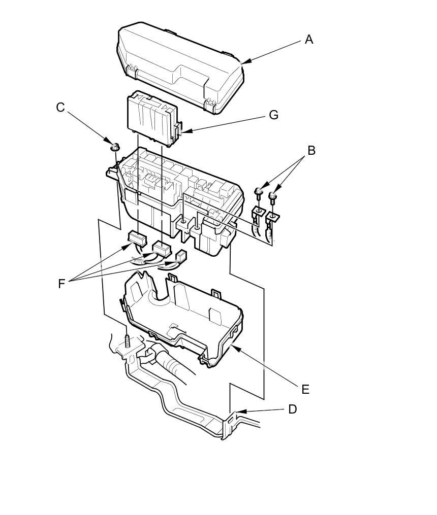 5. Remove the relay circuit board (G) from the under-hood fuse/relay box.