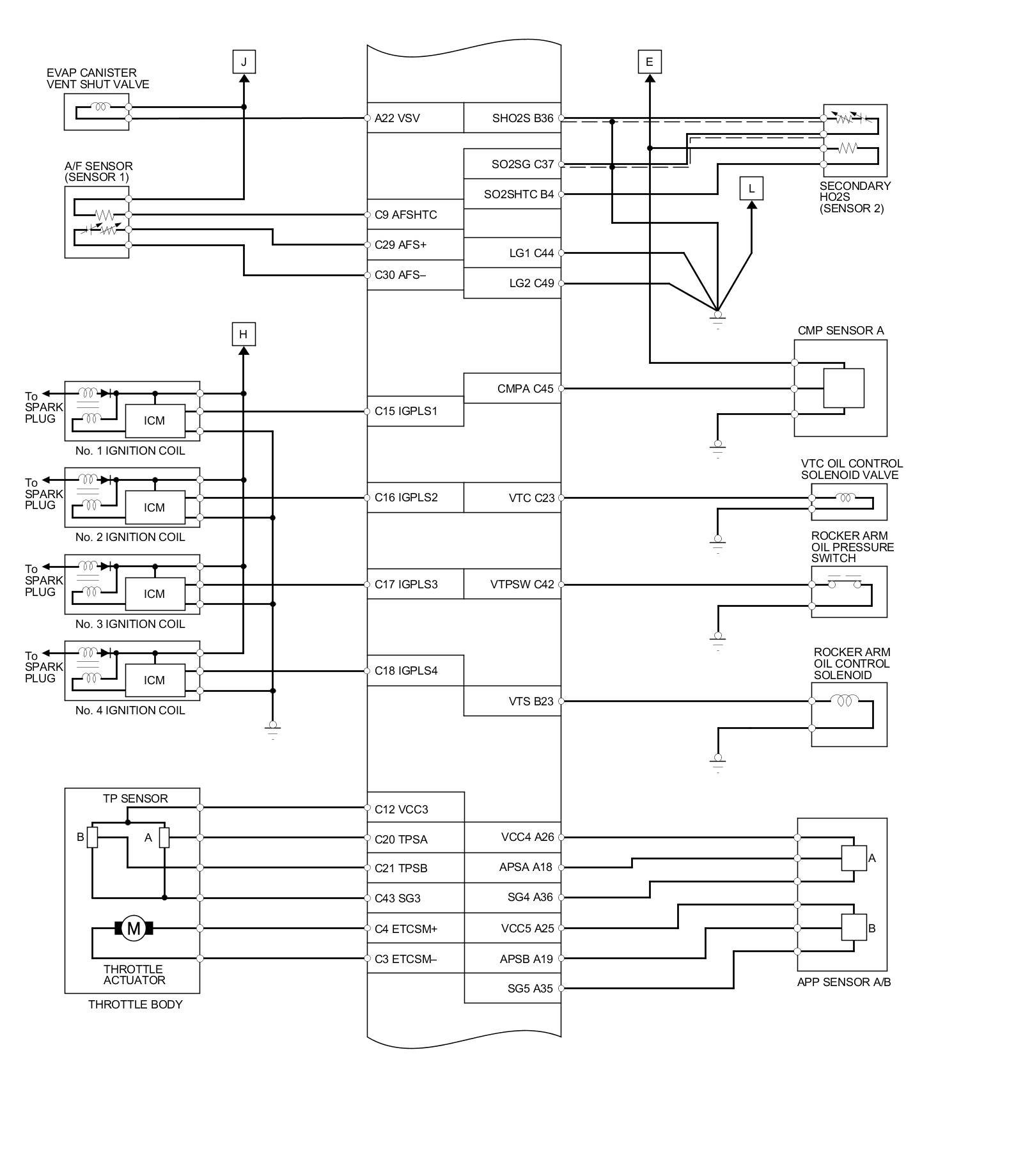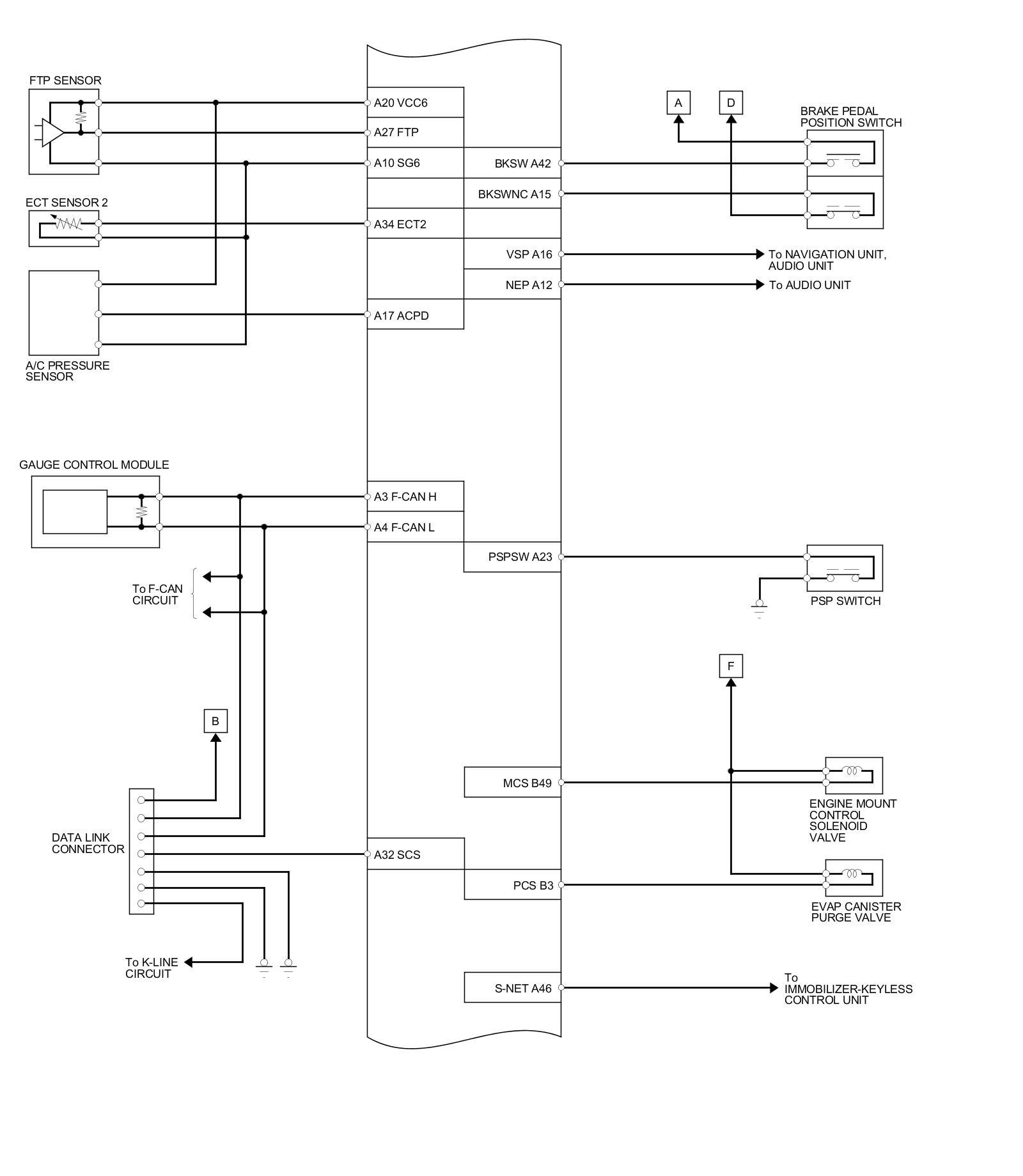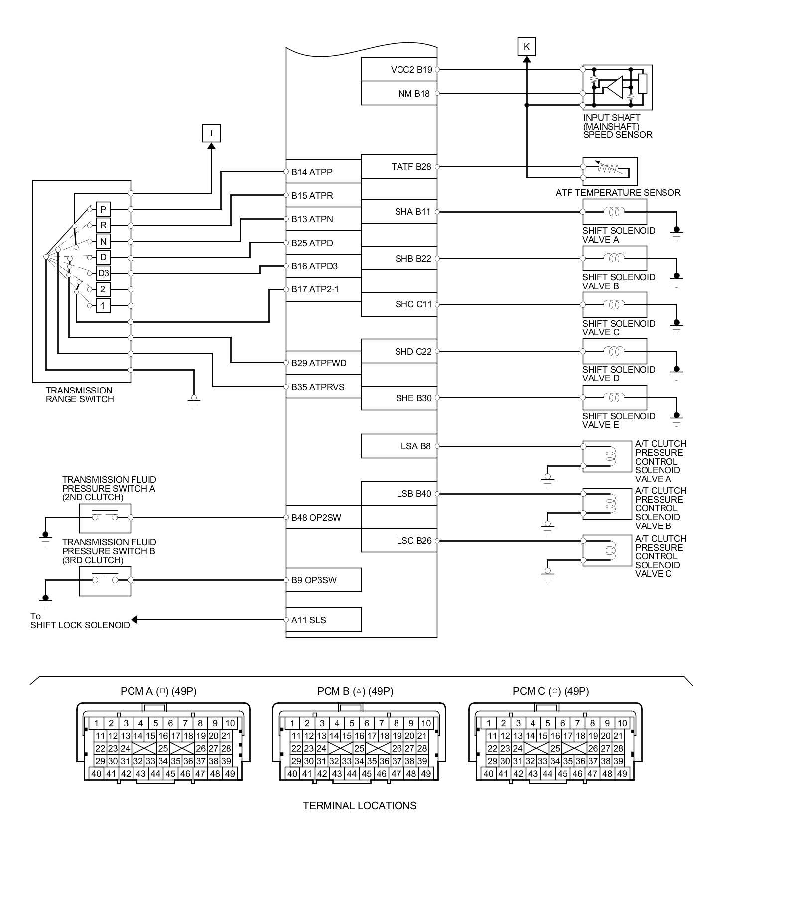 PCM Inputs and Outputs at PCM Connector A (square) (49P)