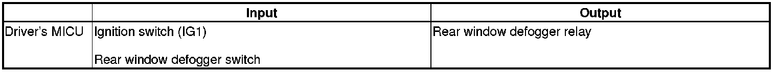 The driver's MICU controls the rear window defogger timer based on ignition switch and rear window defogger switch inputs.
