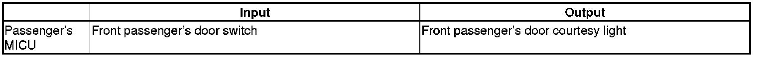 The passenger's MICU controls the front passenger door courtesy light based on inputs from the front passenger door switch.