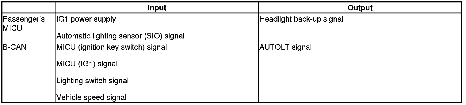 When any of the data from the B-CAN circuit cannot be received within a specified time, or an unusual combination of data is recognized, the MICUs move to the software fail-safe mode. The data that was not received is forced to a pre-programmed value.