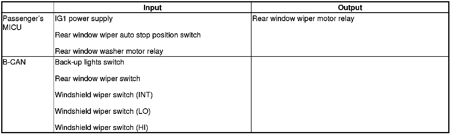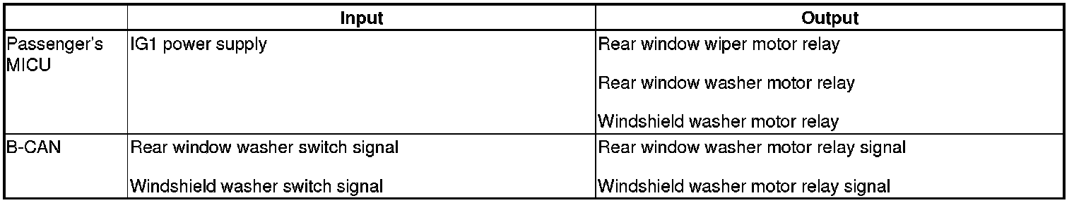 The passenger's MICU controls the rear window wiper motor and rear window washer motor based on inputs from the wiper switch.