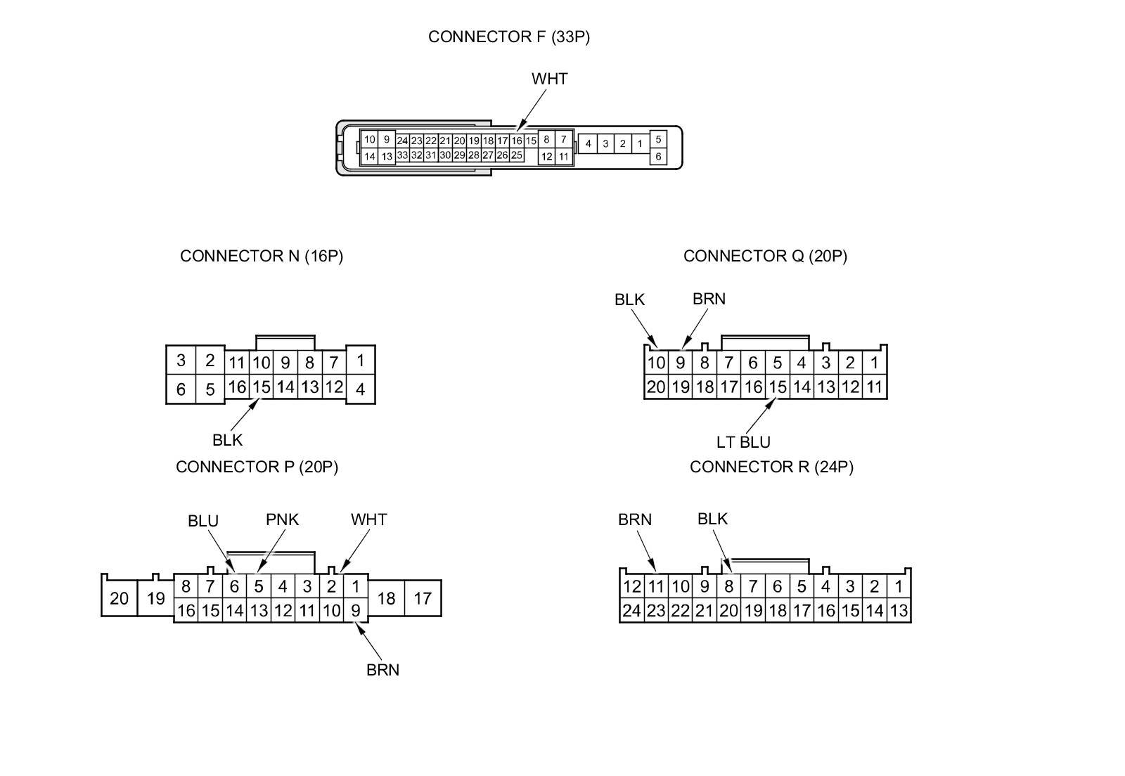 3. Disconnect driver's under-dash fuse/relay box connectors F, N, P, Q, and R.