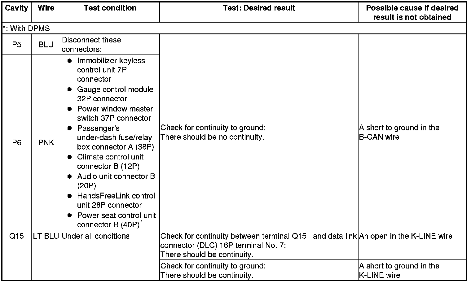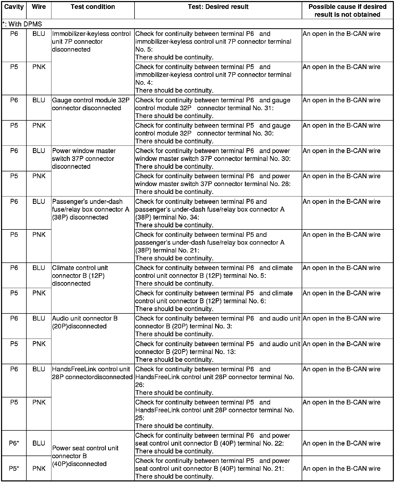 NOTE: Before testing, troubleshoot the multiplex integrated control unit first, using B-CAN System Diagnosis Test Mode A.