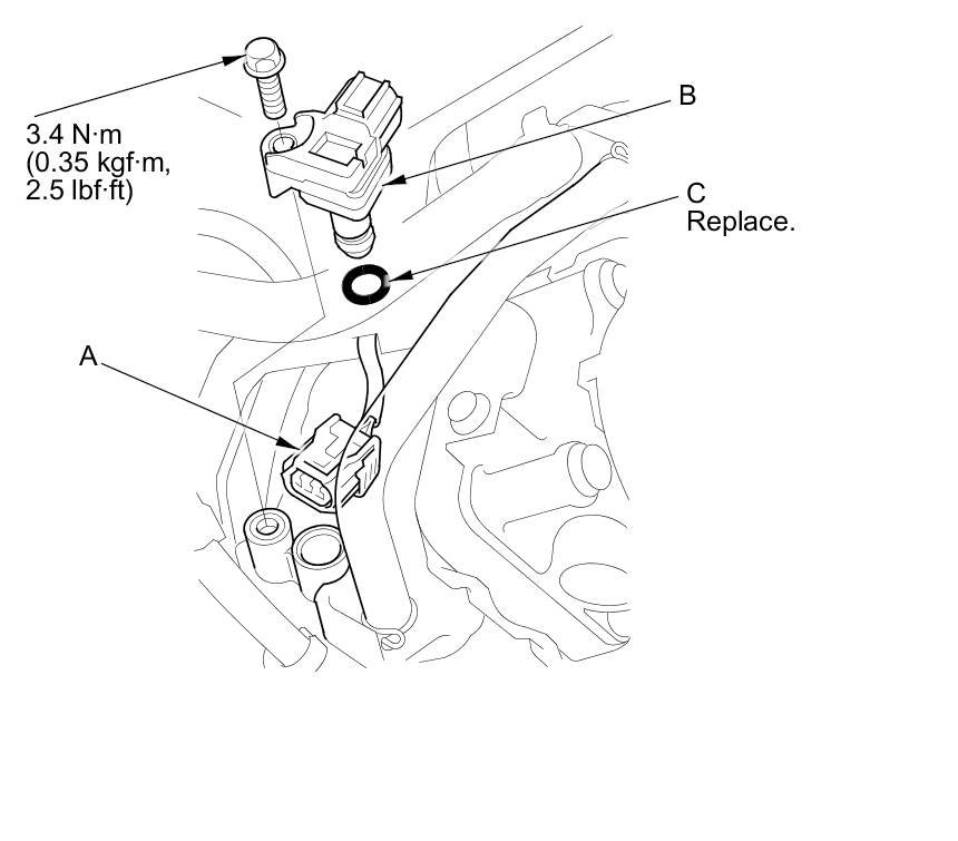 Install the parts in the reverse order of removal with a new O-ring (C).