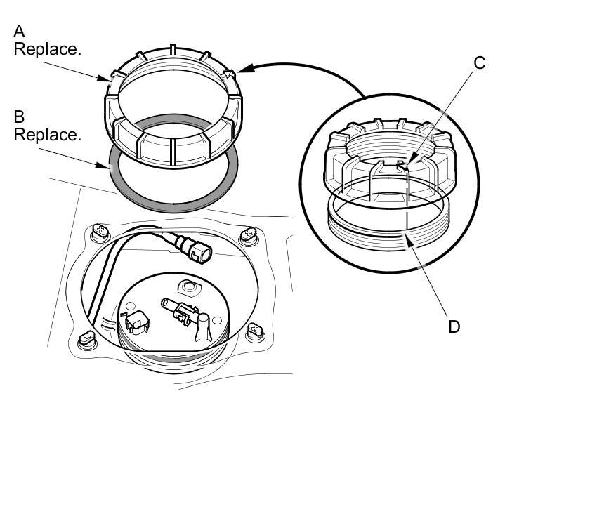 5. Disconnect the quick-connect fitting (C) from the fuel tank unit.