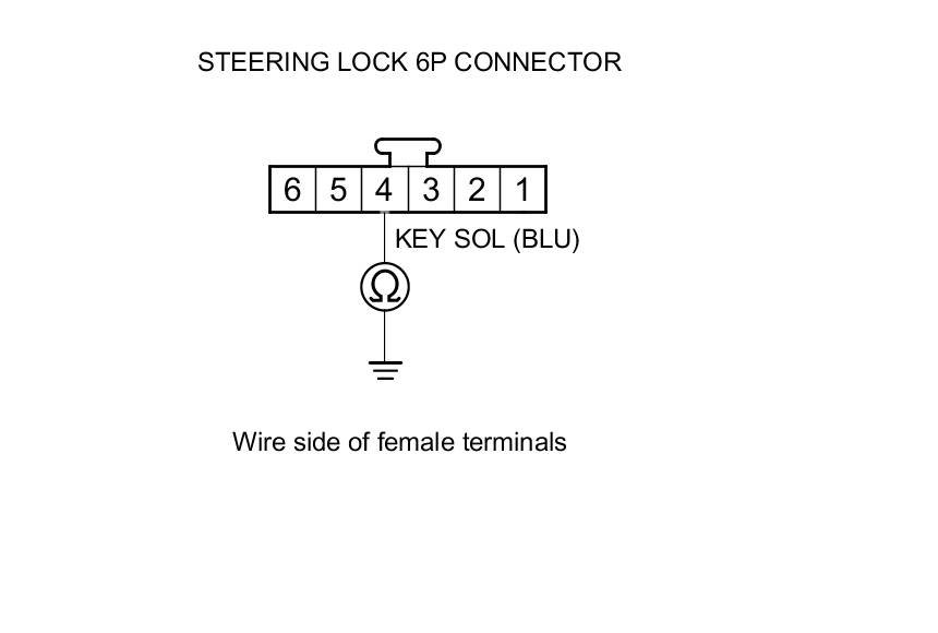 11. Check for continuity between steering lock 6P connector terminal No. 4 and body ground.
