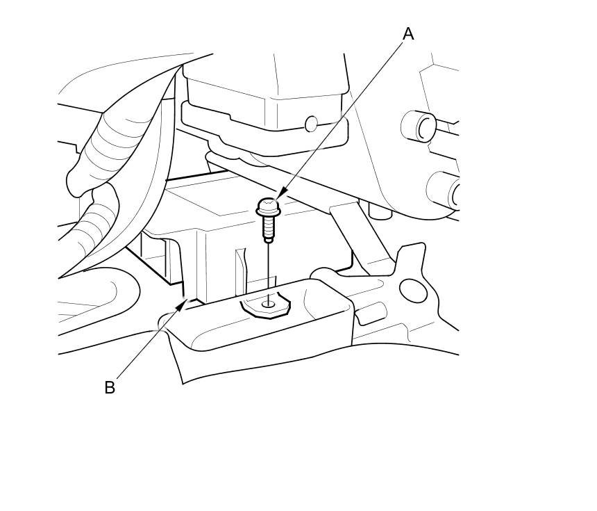 1. Install the SRS unit (A) with the new TORX bolt (B) using a TORX T30 bit.