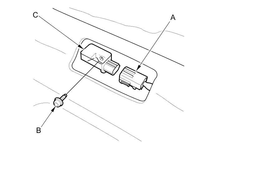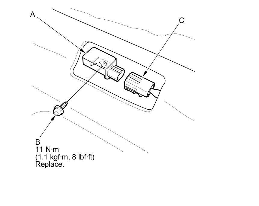 4. Remove the TORX bolt (B) using a TORX T30 bit, then remove the rear safing sensor (C).