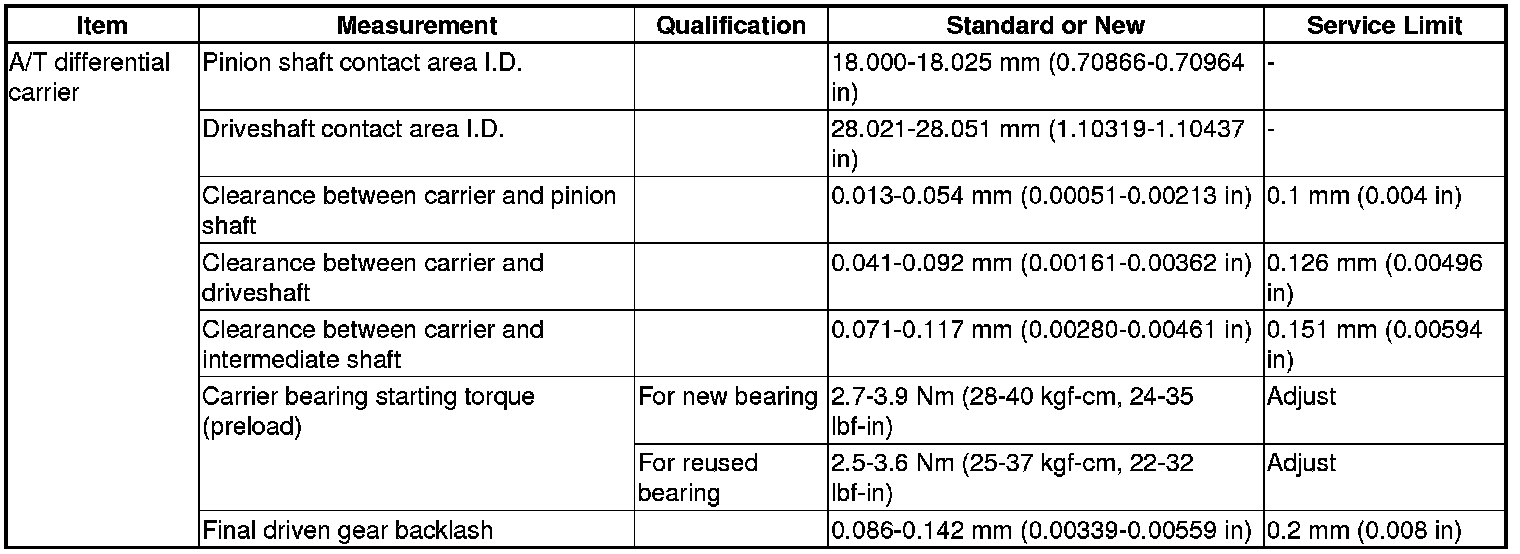 A/T Differential Carrier Specification(s)