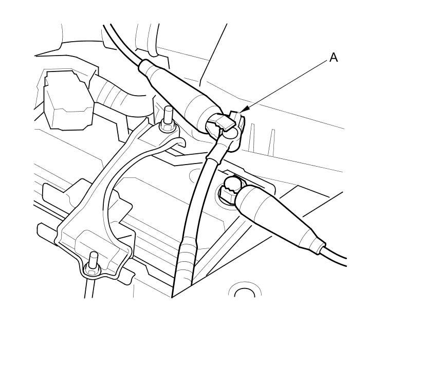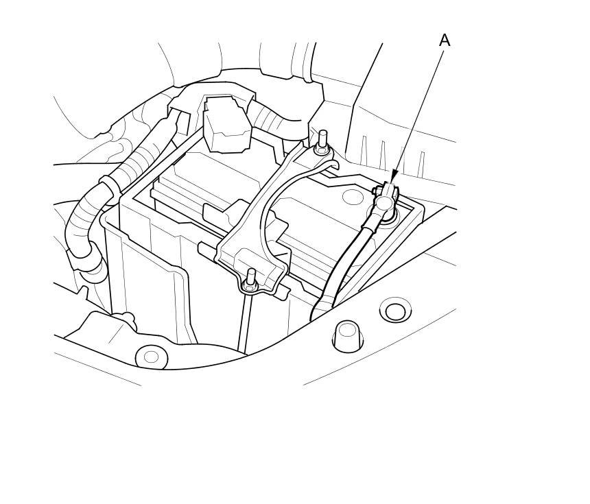 15. Disconnect the negative terminal (A) of the battery ground cable from the battery negative terminal.