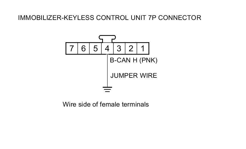 21. Connect immobilizer-keyless control unit 7P connector terminal No. 4 and body ground with a jumper wire.
