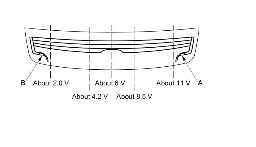 - If the voltage is not as specified, repair the defogger wire.