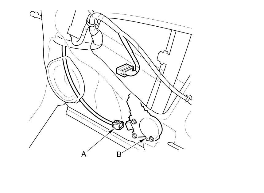 5. Disconnect the 6P connector (A) from the front passenger's power window motor (B).