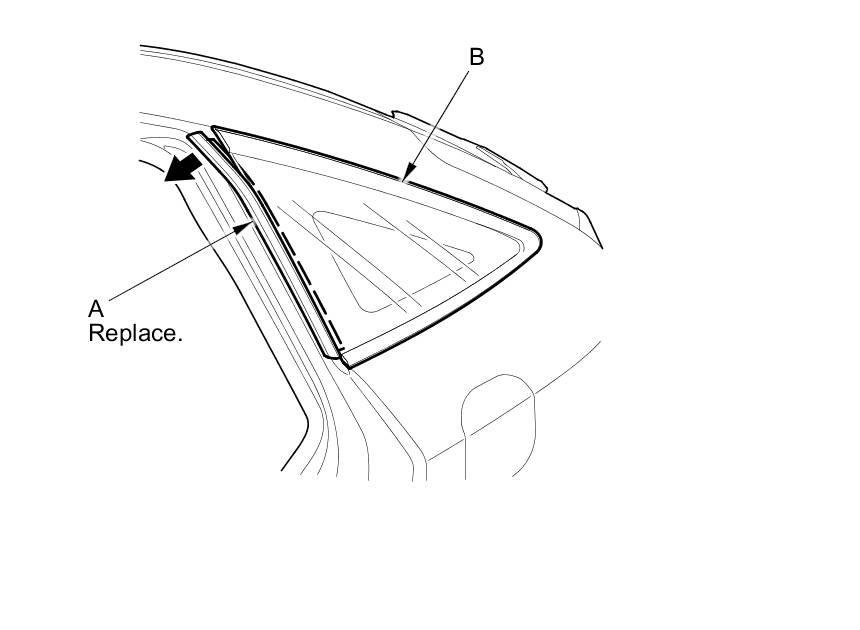 2. Remove the front seal (A) from the front edge of the quarter glass (B). If necessary, cut the seal with a utility knife.