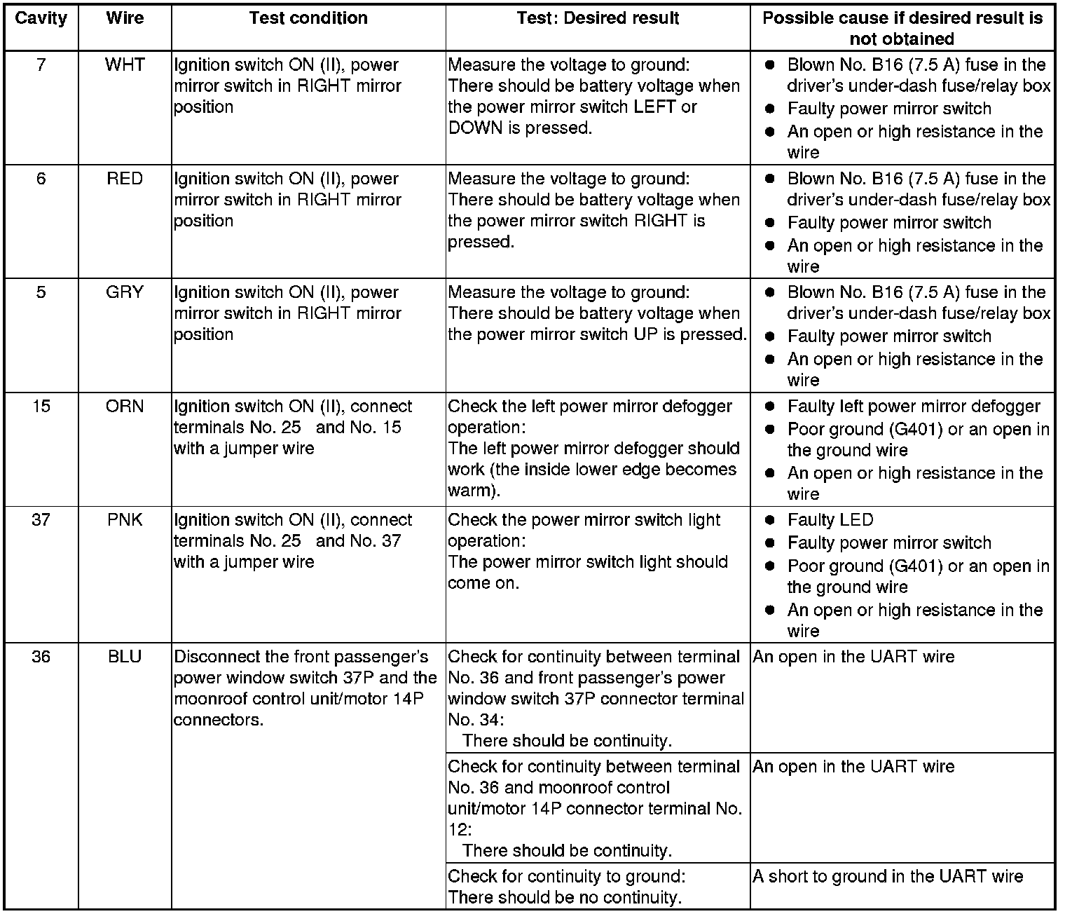 Power Mirrors (Power Window Master Switch) Input Test