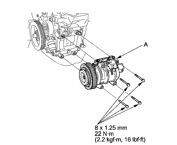 7. Install the A/C compressor in the reverse order of removal, and note these items: