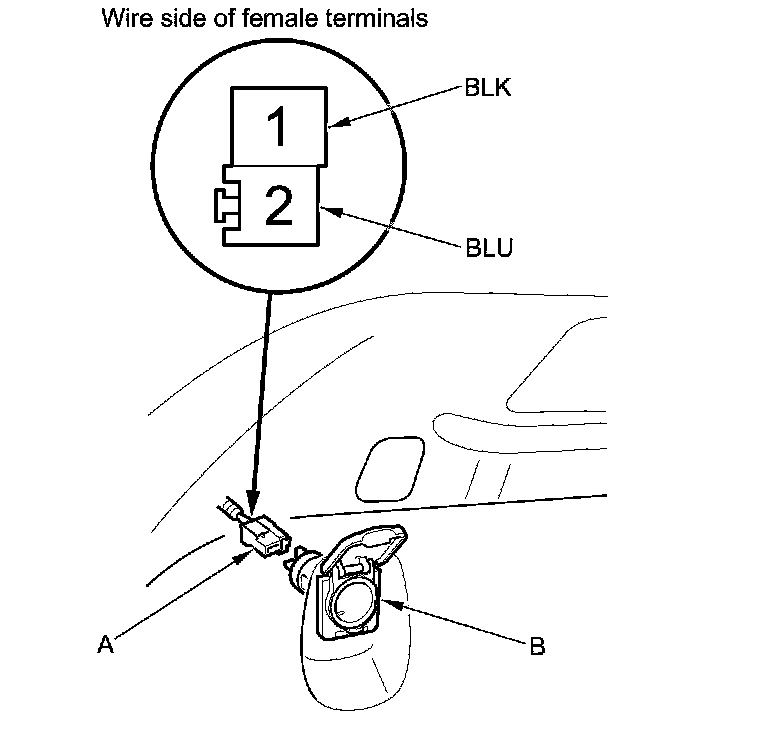 2. Disconnect the 2P connector (A) from the cargo area accessory power socket (B).