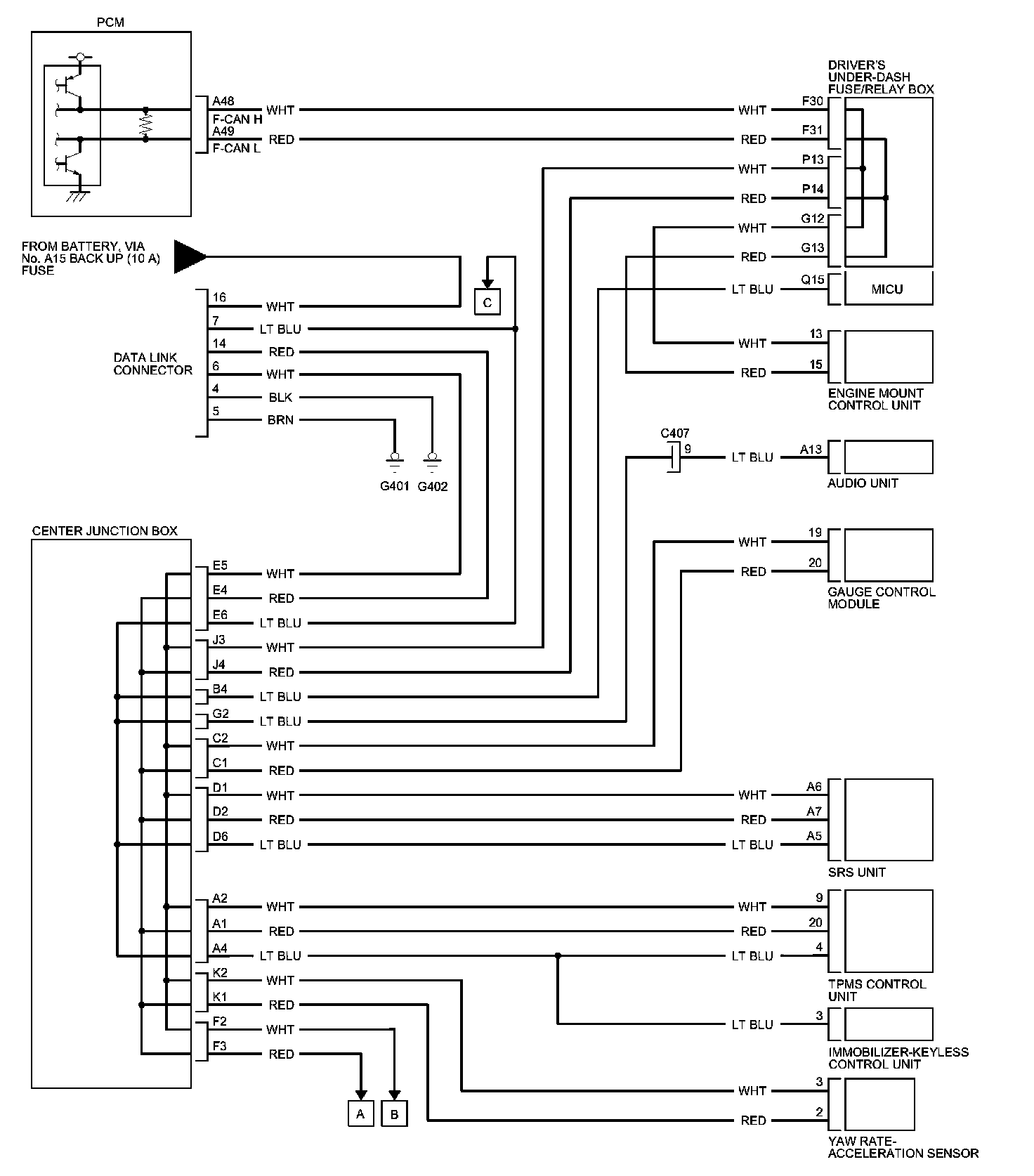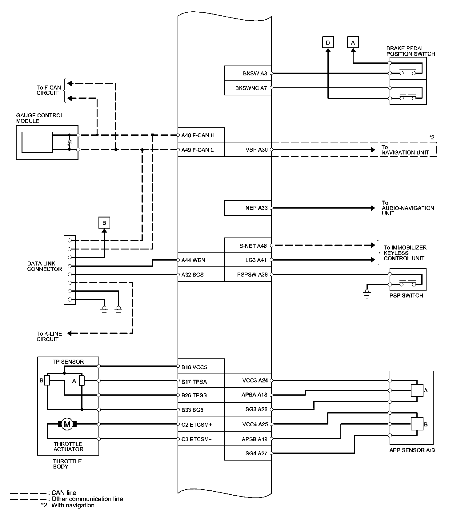 After the ignition switch is turned to LOCK (0), the PCM stays on for up to an hour. If a PCM connector is disconnected during this time, the PCM may be damaged. To cancel this mode, disconnect the negative cable from the battery or jump the SCS line with the HDS after the ignition switch is turned to LOCK (0).