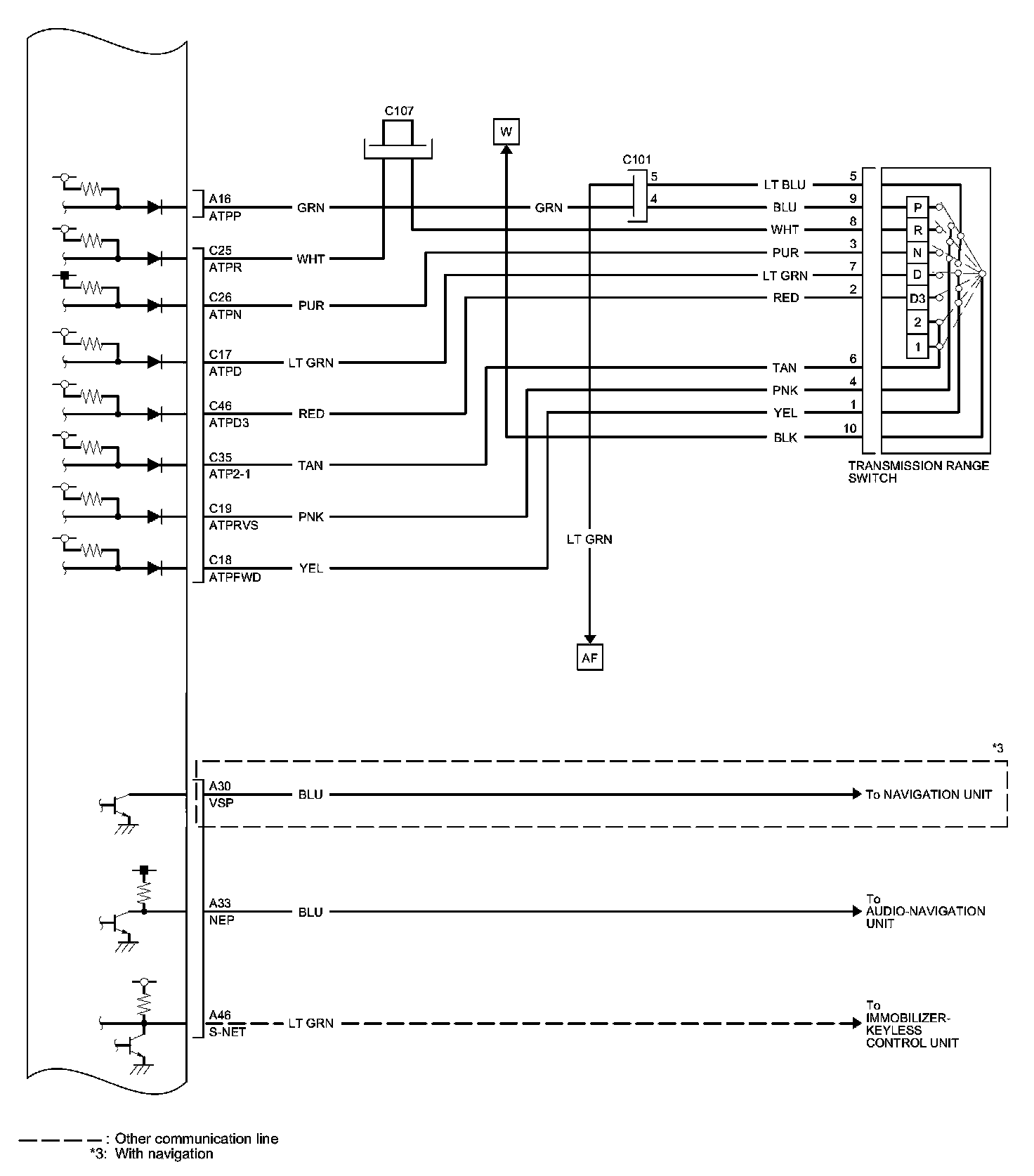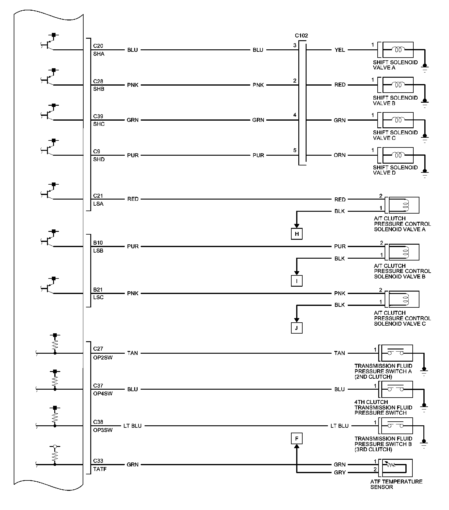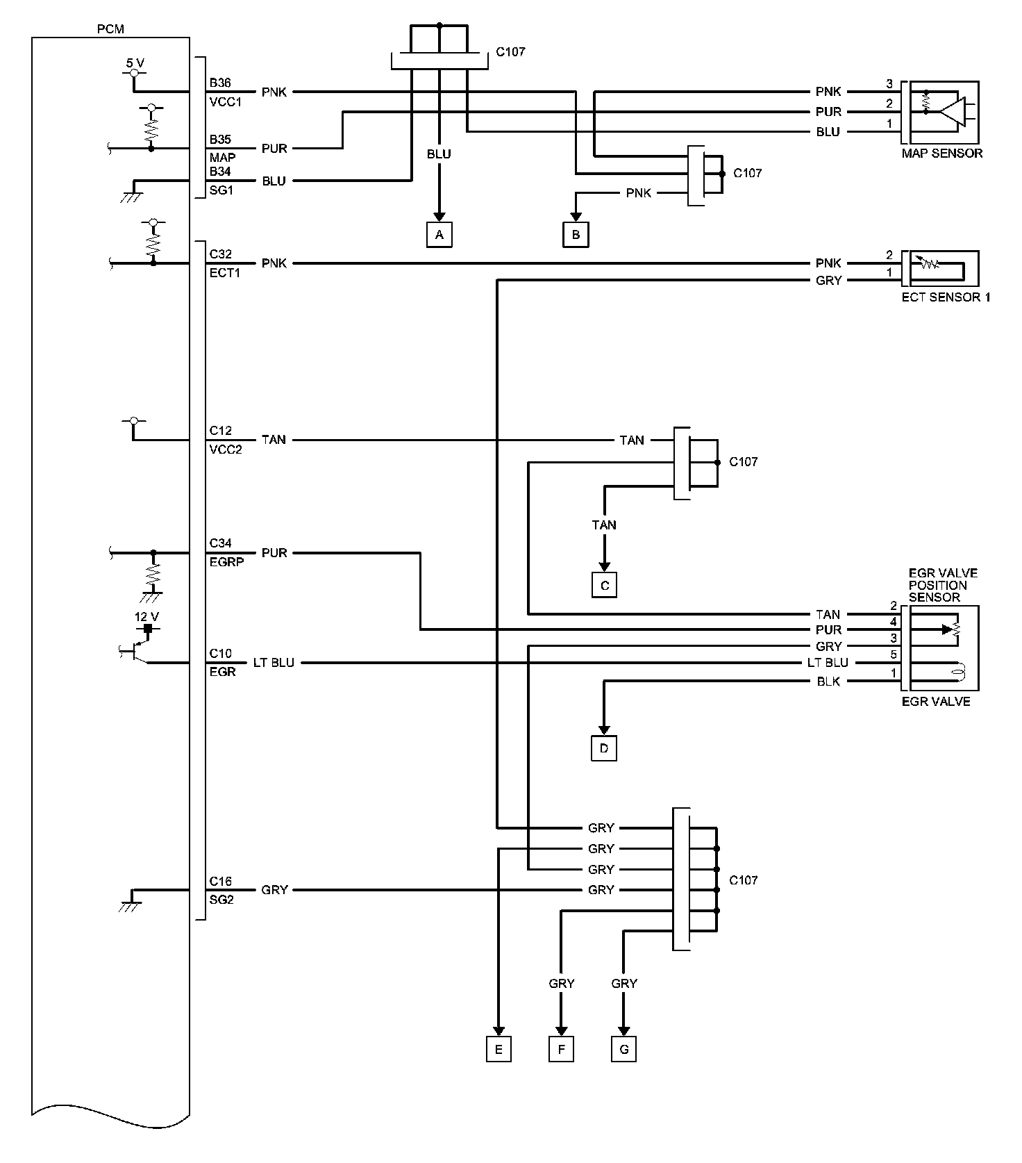 PCM Inputs and Outputs at PCM Connector A (square) (49P)