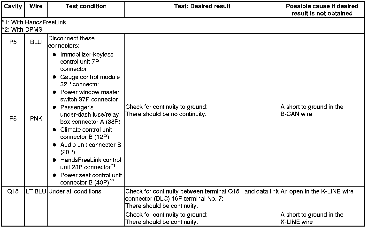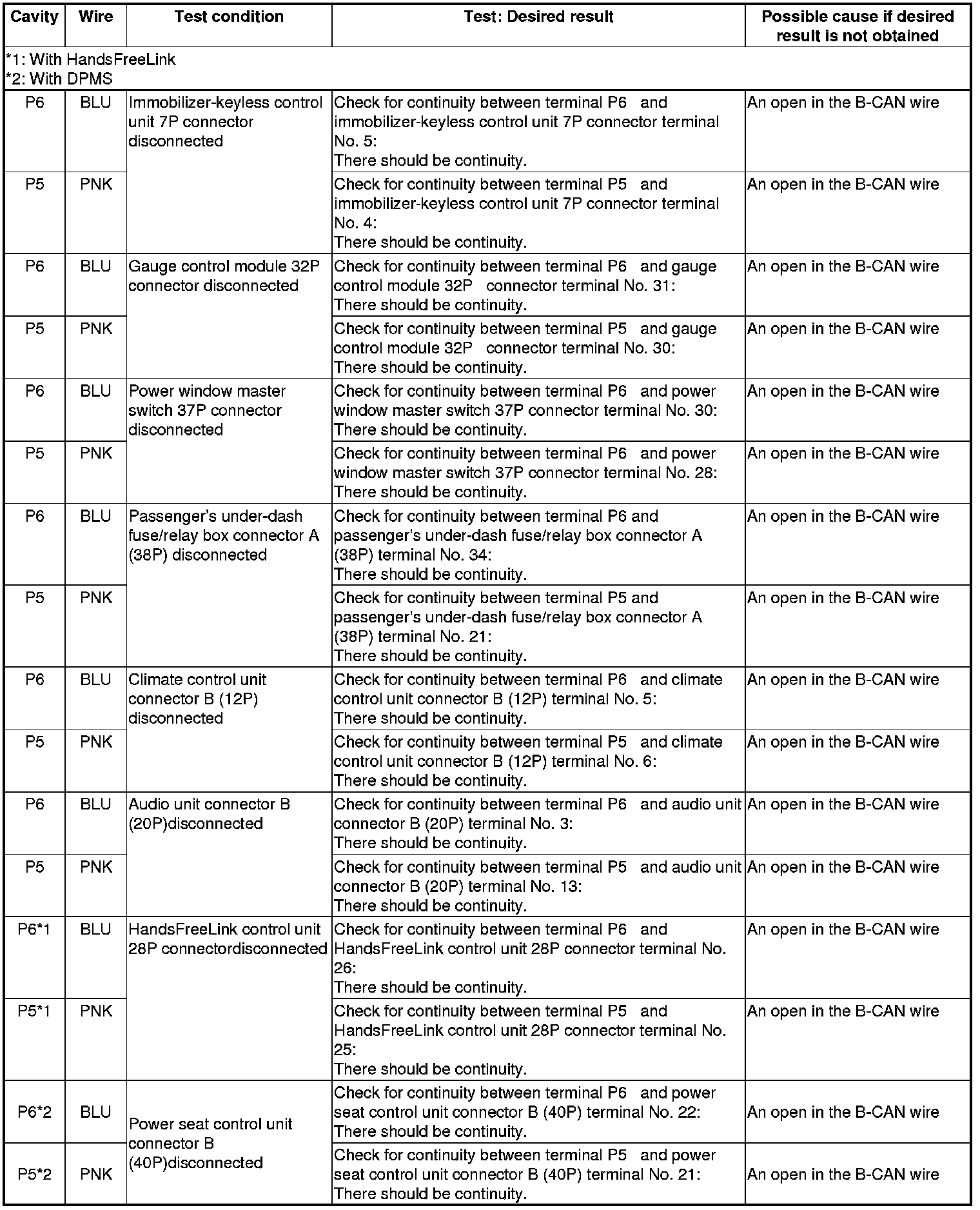 NOTE: Before testing, troubleshoot the multiplex integrated control unit first, using B-CAN System Diagnosis Test Mode A.