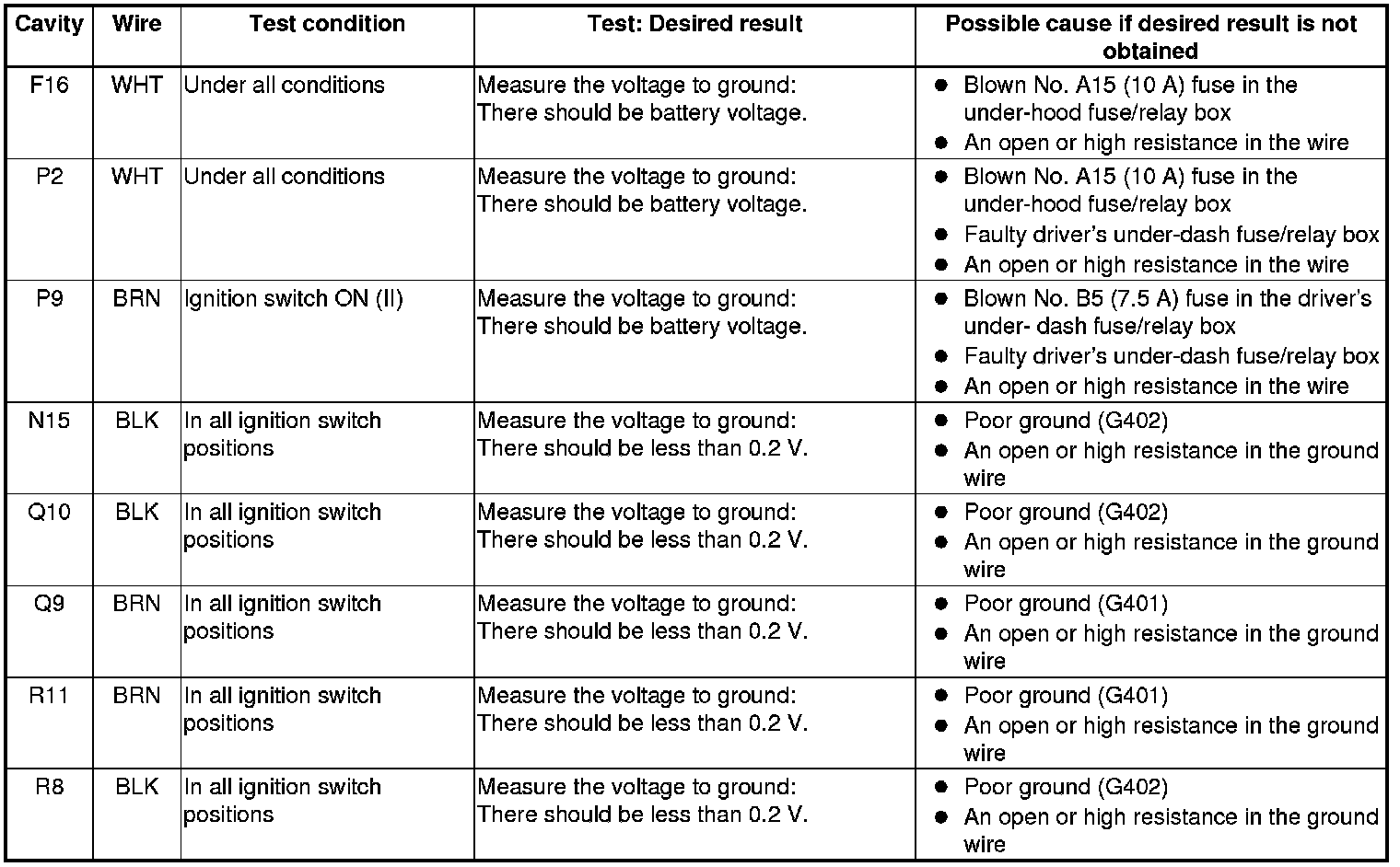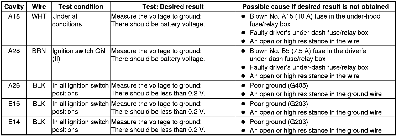 11. Reconnect the connectors to the passenger's under-dash fuse/relay box, and do the following input tests: