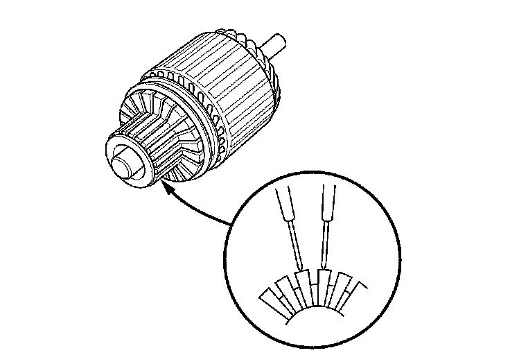 10. Use an ohmmeter to check for continuity between the segments of the commutator. If there is an open circuit between any segments, replace the armature.