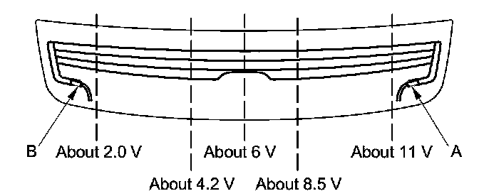 - If the voltage is as specified, the defogger wire up to that point is OK.