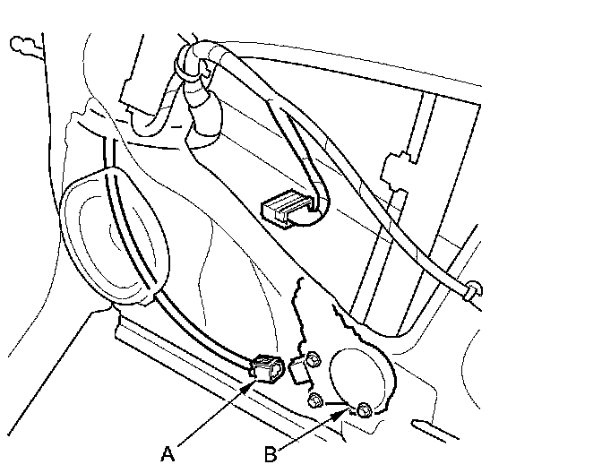 5. Disconnect the 6P connector (A) from the front passenger's power window motor (B).