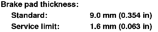 4. If any part of the brake pad thickness is less than the service limit, replace the brake pads as a set.
