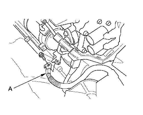 62. Remove the harness bracket (A), then remove the upper transmission mount bracket mounting bolts and nut.