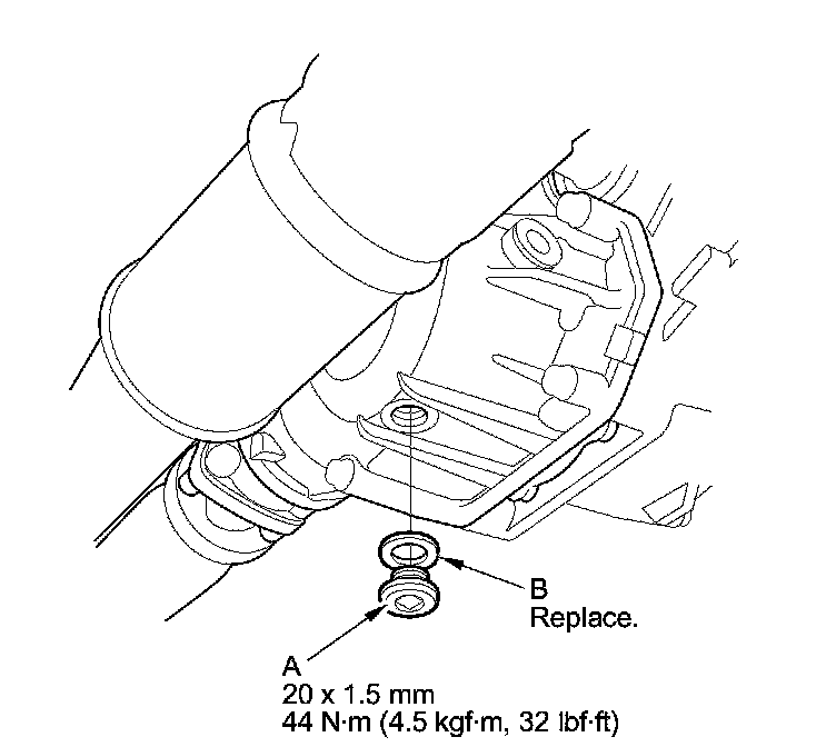 3. Remove the drain plug (A), and drain the transfer fluid (hypoid gear oil).