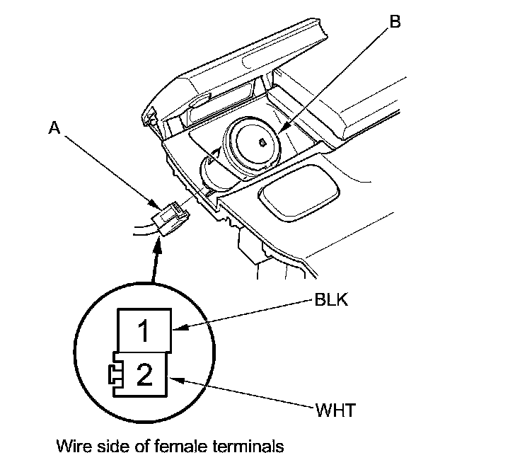 2. Disconnect the 2P connector (A) from the front accessory power socket (B).
