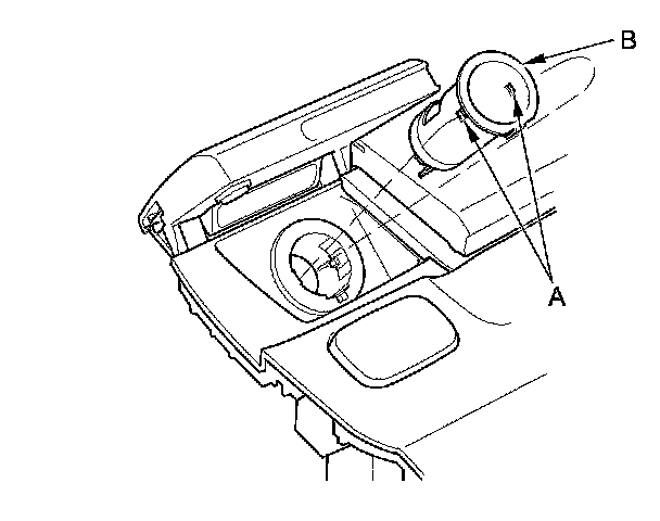 9. Gently press the tabs (A), then remove the housing (B) from the panel. Note the location of the indexing tabs (C).