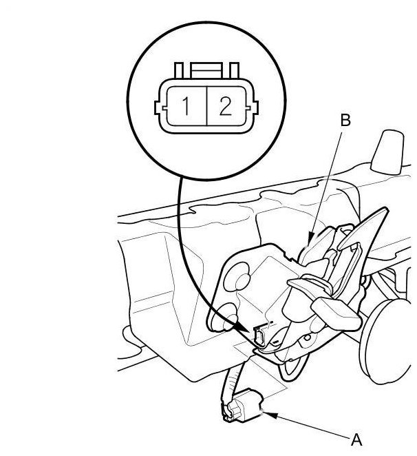 - There should be continuity between terminals No. 1 and No. 2 when the hood is opened (lever released).
