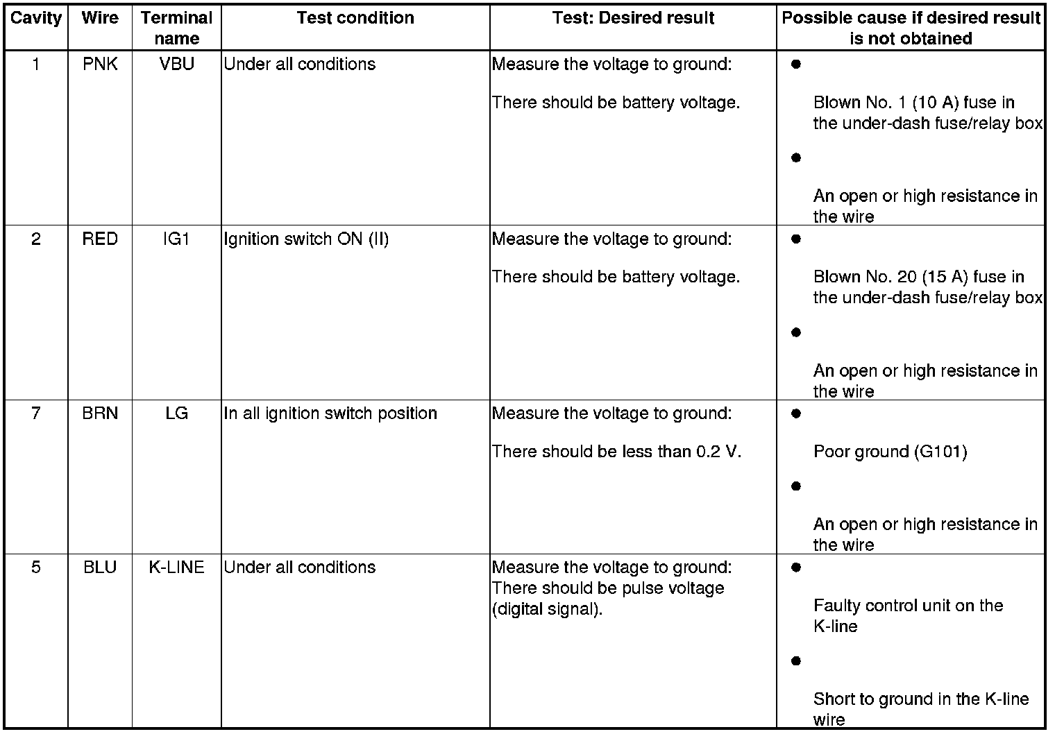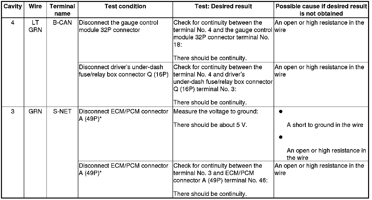 - Before testing, troubleshoot the multiplex integrated control unit first, using B-CAN System Diagnosis Test Mode A Troubleshooting - B-CAN System Diagnosis Test Mode A.