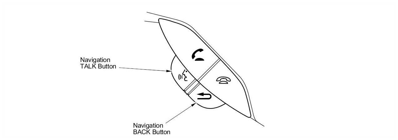 This navigation system also has voice recognition that allows voice control of most of the navigation functions. The Navigation TALK and Navigation BACK buttons on the steering wheel activate the voice control. The voice control also allows control of the audio and climate functions.