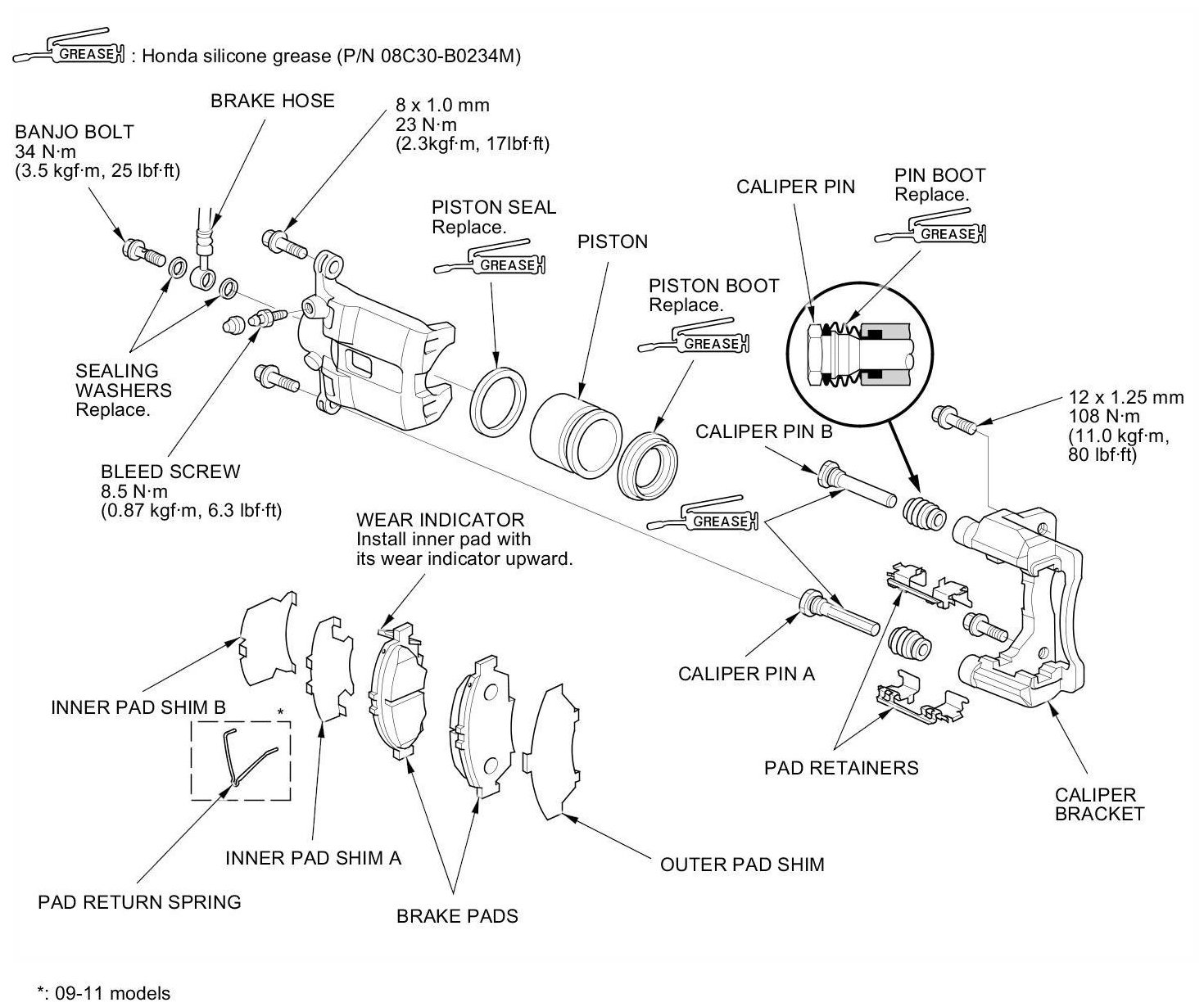 - When reusing brake pads, always reinstall them in their original positions to prevent loss of braking efficiency.