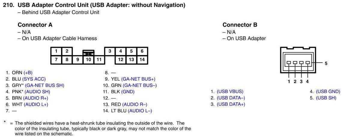 View 210 - USB Adapter Control Unit Connector View (USB Adapter : Without Navigation)
