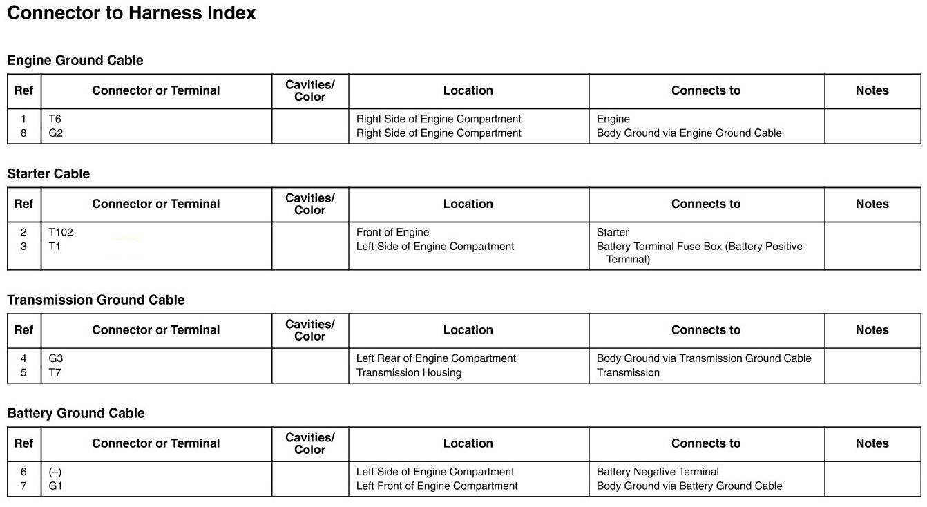 Engine Ground Cable, Starter Cable, Transmission Ground Cable, And Battery Ground Cable