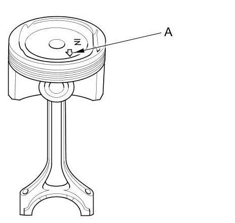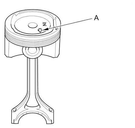 3. Position the piston/connecting rod assembly with the arrow (A) facing the cam chain side of the engine block.