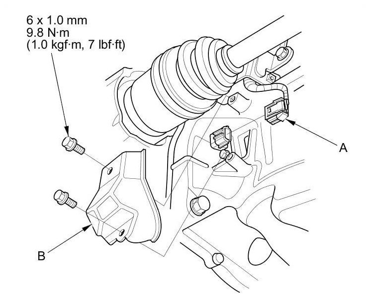 8. Connect the CKP sensor connector (A), then install the CKP sensor cover (B).
