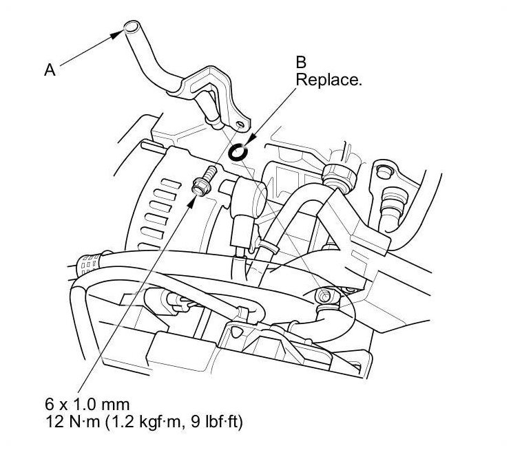 9. Install the dipstick tube (A) with a new O-ring (B), then install the dipstick.