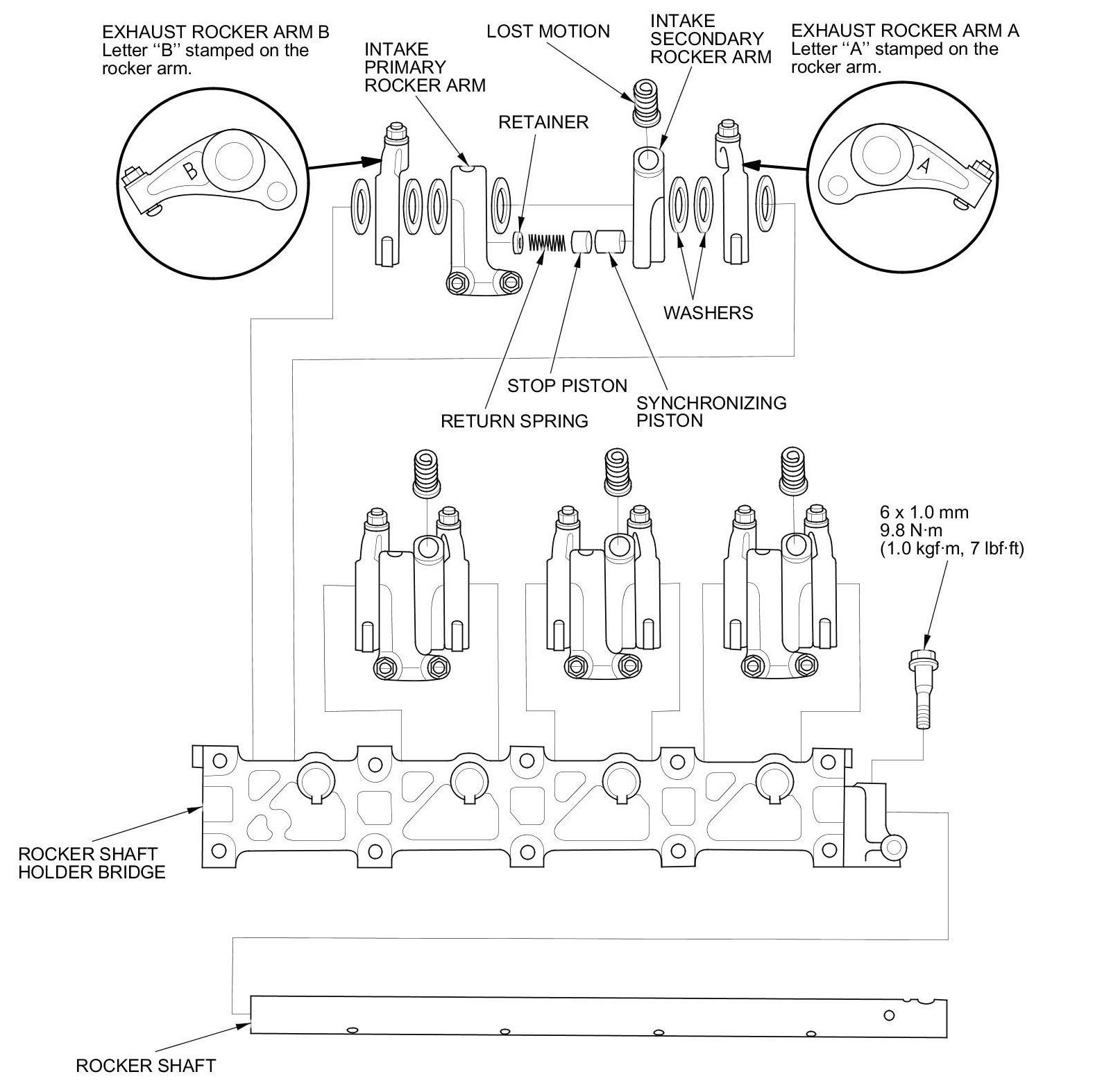 - Remove the rocker shaft bolt before removing the rocker shaft from the rocker shaft holder bridge.
