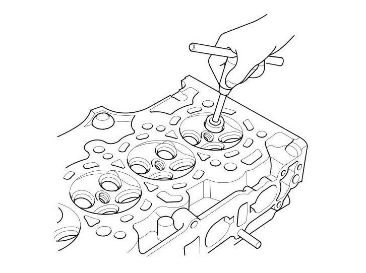 2. Renew the valve seats in the cylinder head using a valve seat cutter.