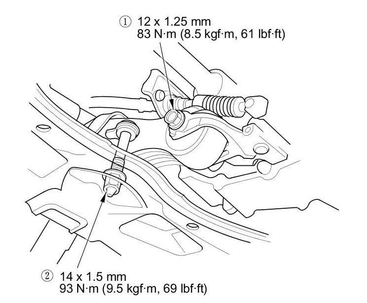 14. Tighten the front subframe mounting bolts in the numbered sequence shown.