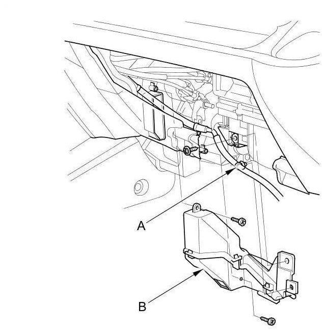 1. Remove the passenger's dashboard undercover Passenger's Dashboard Undercover Removal/Installation and the glove box Glove Box Removal/Installation.