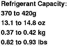 5. Charge the system with the specified amount of R-134a refrigerant. Do not overcharge the system; the A/C compressor will be damaged.