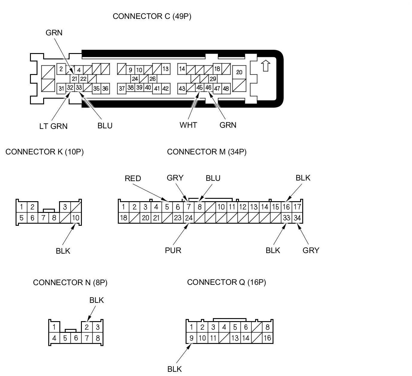3. Disconnect under-dash fuse/relay box connectors C, K, M, N, and Q.