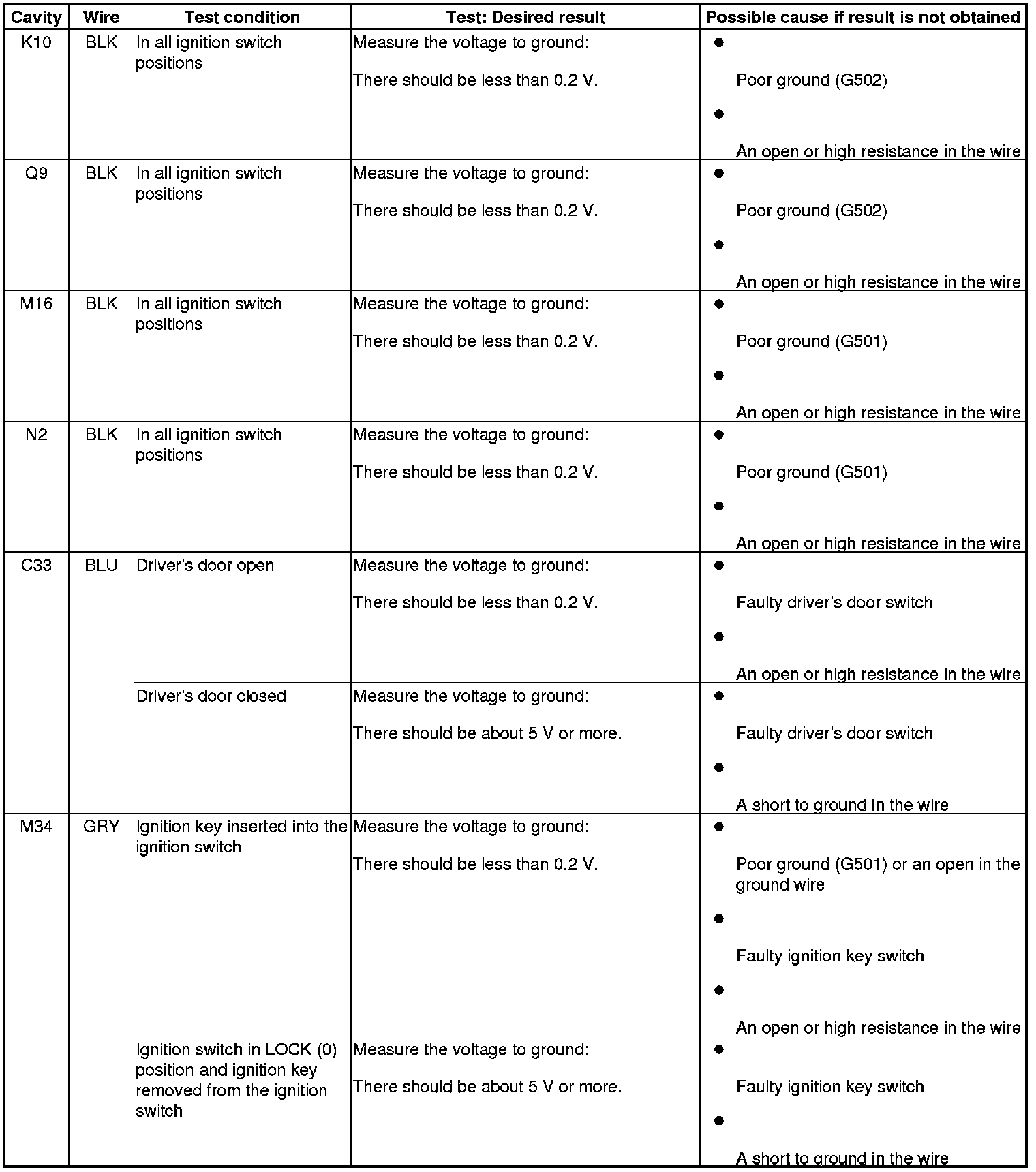Reminder Systems (MICU and Gauge Control Module) Input Test
